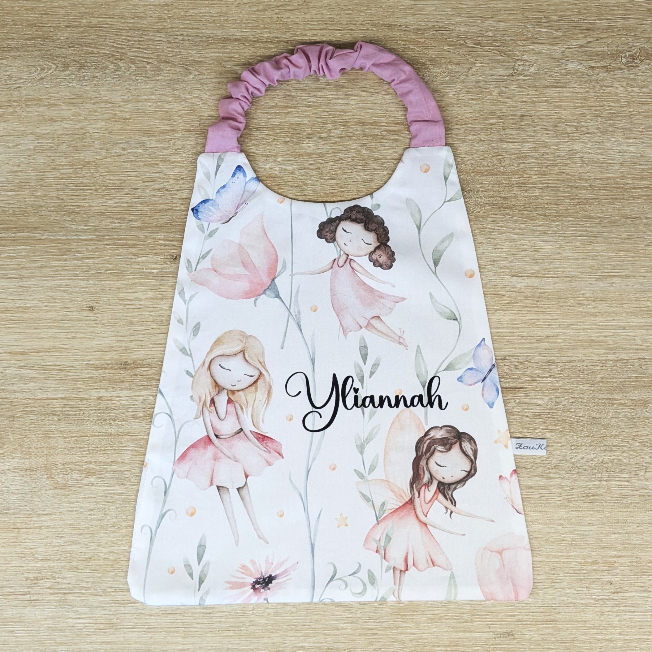 Cette serviette de table est entièrement doublée. Elle fait 31 cm de large pour 35 cm de haut (sans l’élastique). Elle est élastiquée et donc facile à enfiler, idéale pour la cantine et l'autonomie.