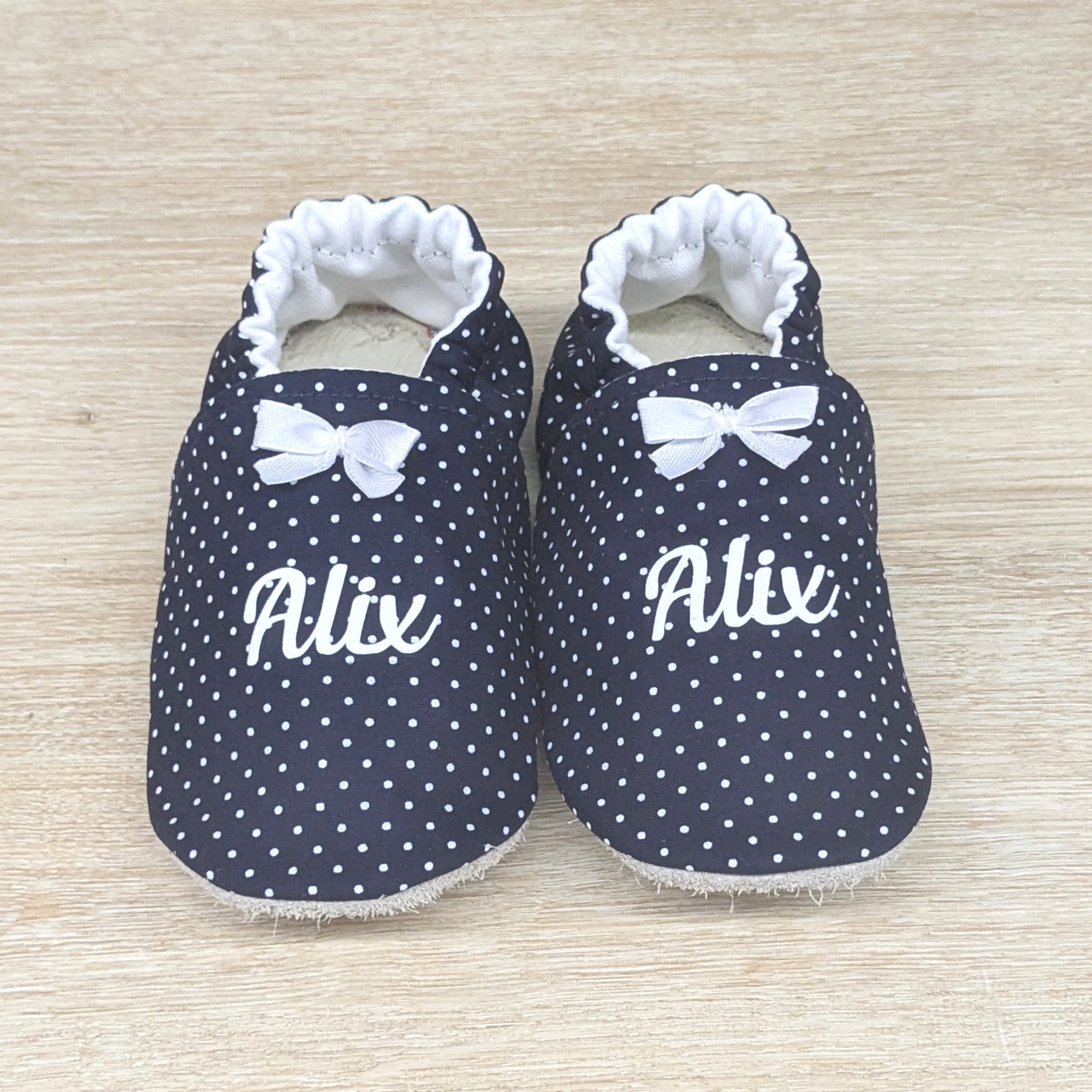 Ces chaussons sont personnalisables au prénom de bébé. La semelle est en cuir véritable antidérapante. Les chaussons sont entièrement doublés de coton ou de polaire, pour un meilleur confort.