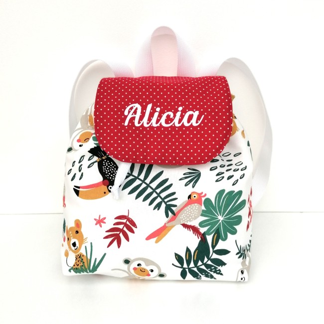 Sac à dos enfant personnalisable parfait pour le doudou et le goûter de la maternelle en coton jungle